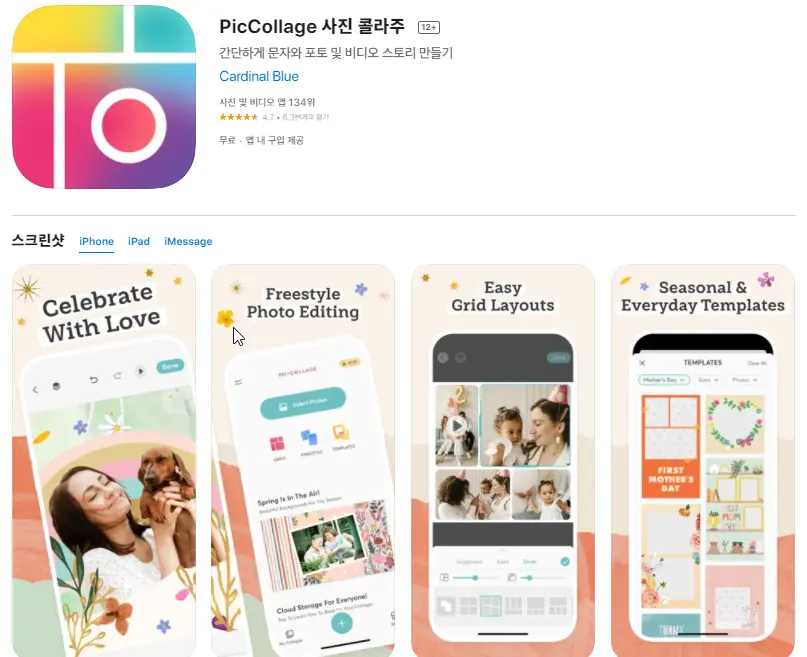 1. PicCollage 사진 콜라주 (아이폰/갤럭시) 어플 추천