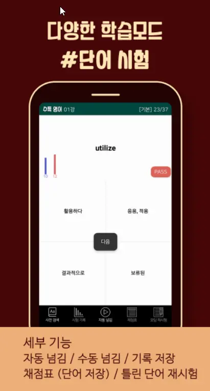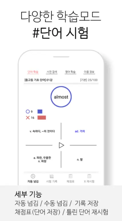 특징4> 취향에 따른 다양한 학습모드 및 시험기능 제공