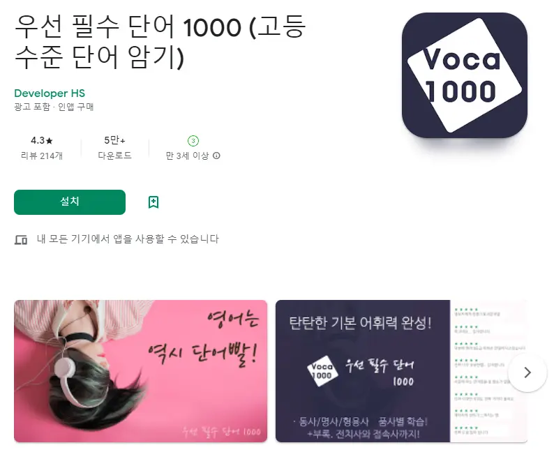 1. 우선 필수 단어 1000 (고등 수준 단어 암기) 어플 추천