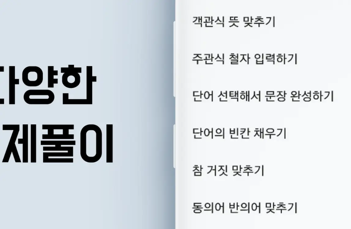 영단어는관리다는 다양한 종류의 퀴즈가 준비되어 있어