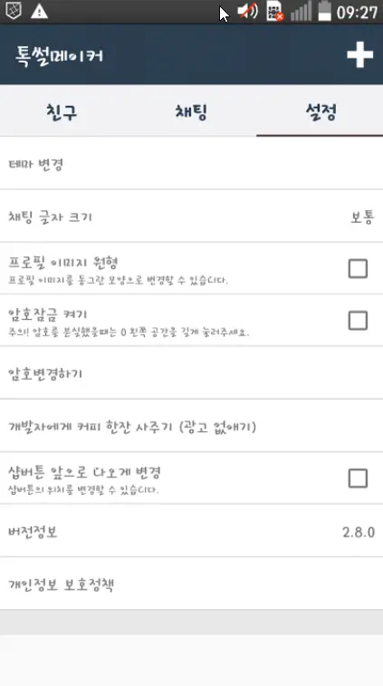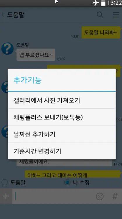 * 음성메세지, 보이스톡 전송 가능 (채팅 플러스 보내기) - 동영상 보내기 기능 삭제